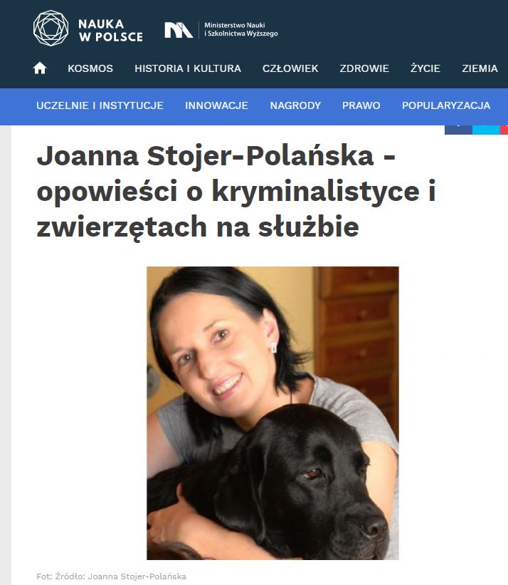 Czytaj więcej: https://naukawpolsce.pap.pl/aktualnosci/news%2C85605%2Cjoanna-stojer-polanska-opowiesci-o-kryminalistyce-i-zwierzetach-na-sluzbie