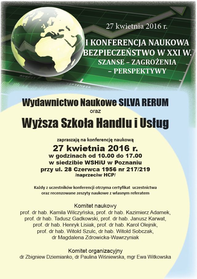Zapraszamy na konferencję naukową w Poznaniu w siedzibie WSHiU 27 kwietnia 2016 r. poświęconą rożnym aspektom bezpieczeństwa.