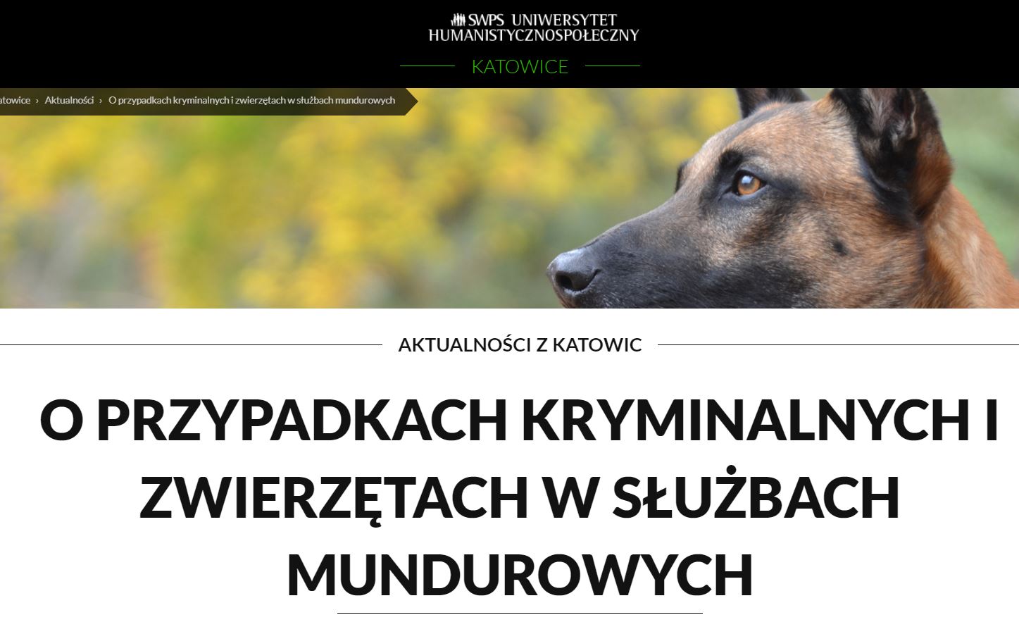Zwierzęta to nie tylko kanapowi towarzysze człowieka. Oddział K9, policja konna, psy ratownicze pomagają ludziom w trudnych sytuacjach, dbają o nasze bezpieczeństwo, pełnią funkcje reprezentacyjne, wspierają działania kryminalistyków. Psy tropiące potrafią odnaleźć ślad lub rzecz, która może przyczynić się do rozwiązania sprawy, która utknęła w martwym punkcie. Jednak, nie wszystkie przestępstwa są przedmiotem postępowania policji, nie każda zbrodnia ma swoją teczkę w policyjnych kartotekach. O zwierzętach pracujących w służbach mundurowych oraz ciemnej liczbie przestępstw opowie dr Joanna Stojer-Polańska, kryminalistyk i wykładowczyni na Wydziale Zamiejscowym Uniwersytetu SWPS w Katowicach.