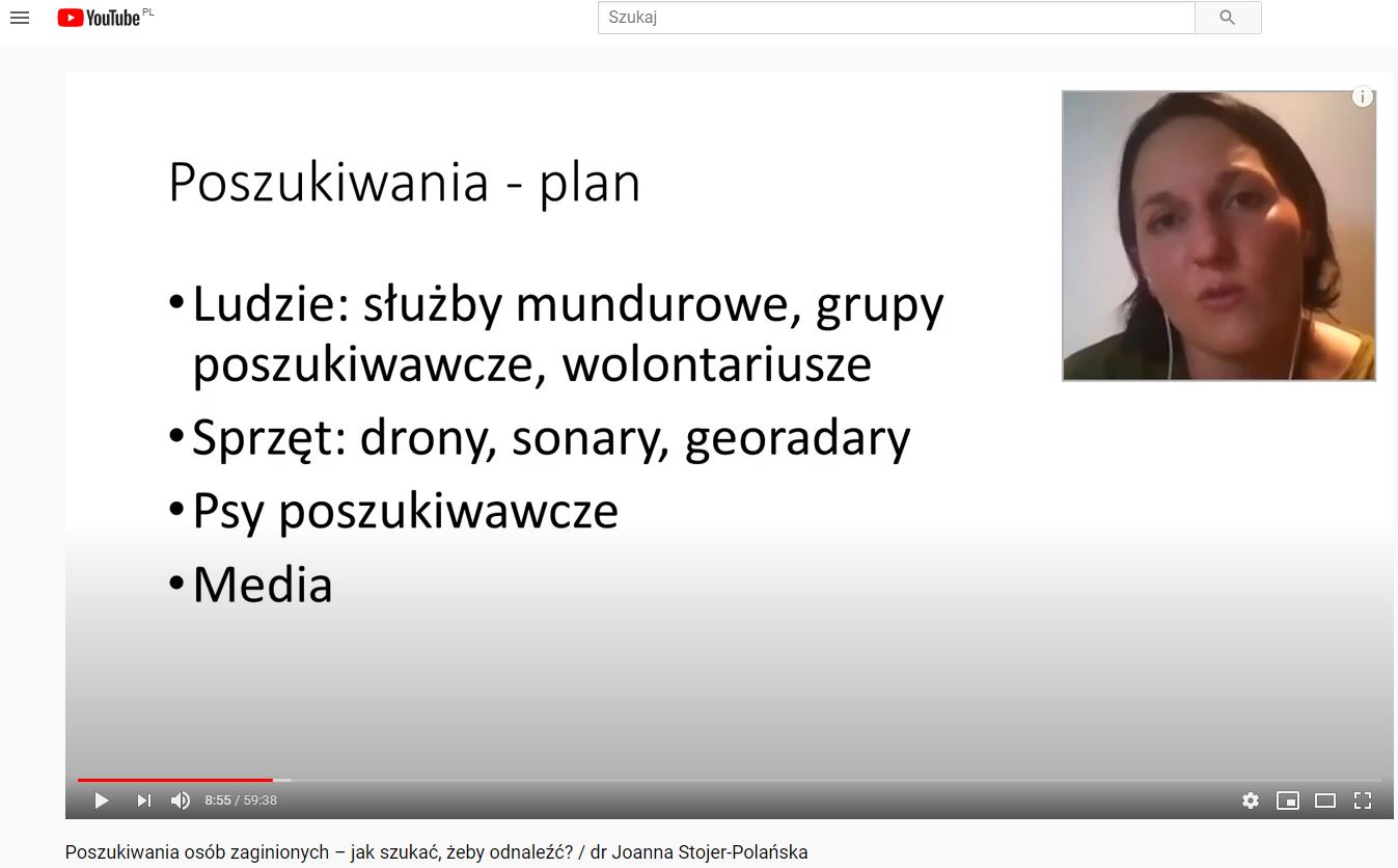Poszukiwania osób zaginionych to problem interdyscyplinarny. Aby odnaleźć zaginionego człowieka, trzeba przeanalizować motyw zaginięcia oraz dobrać odpowiednie metody poszukiwań, takie jak: wykorzystanie potencjału ludzkiego ze służb mundurowych, jak i grup poszukiwawczych oraz wolontariuszy, psów poszukiwawczych, technologii w postaci dronów, sonarów i georadarów oraz monitoringu i logowania telefonów komórkowych. Przydaje się także wiedza dotycząca przyczyn zaginięć, jak i znajomość terenu, gdzie mają być prowadzone poszukiwania.