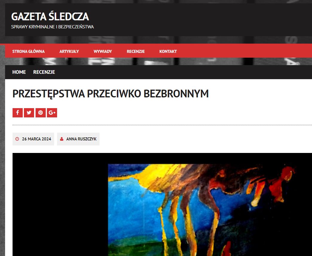 To fragment recenzji książki “Przypadki kryminalne. Ciemna liczba przestępstw przeciwko bezbronnym” zamieszczonej w Gazetasledcza.pl – link – https://gazetasledcza.pl/2024/03/wiktymologia/