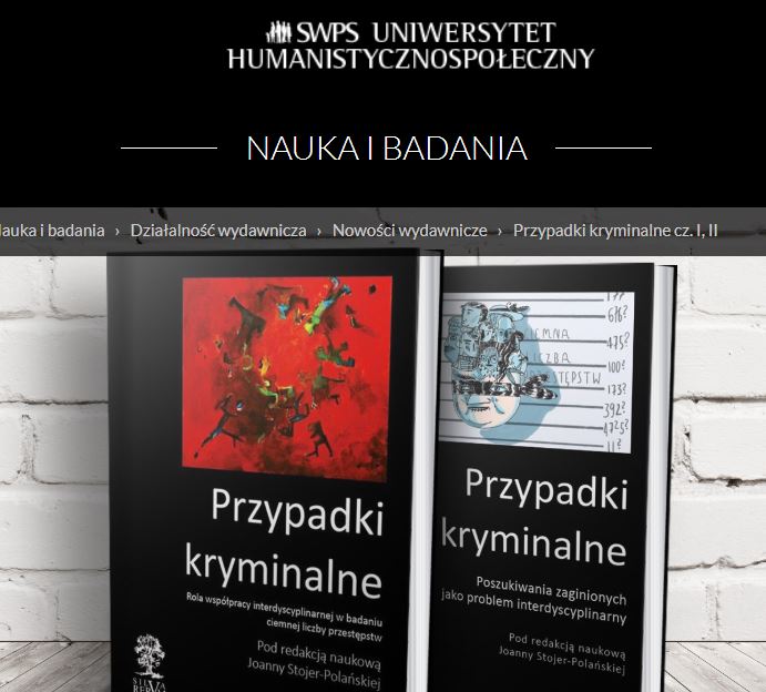 Nie wszystkie przestępstwa są przedmiotem postępowania policji, nie każda zbrodnia jest odnotowywana w policyjnych kartotekach. Zdarzenia te należą do kategorii tzw. ciemnej liczby przestępstw. Przestępczość nieujawniona może być kilkukrotnie większa, niż wynika z oficjalnych danych. Zjawisko to analizują autorzy – specjaliści wielu dziedzin – na kartach książek: „Przypadki kryminalne. Poszukiwania zaginionych jako problem interdyscyplinarny” oraz „Przypadki kryminalne. Współpraca interdyscyplinarna przy badaniu ciemnej liczby przestępstw” pod redakcją naukową dr Joanny Stojer-Polańskiej, kryminalistyk, wykładowczyni na Wydziale Zamiejscowym Uniwersytetu SWPS w Katowicach.