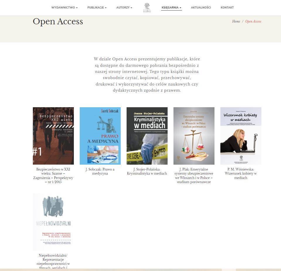 Z inicjatywy Rady Naukowej naszego Wydawnictwa uruchomiliśmy dział otwartego dostępu /Open Access/, by umożliwić darmową lekturę miłośnikom edukacji i nauki, którzy pragną wolnego dostępu do wartościowych książek. W dziale tym udostępniamy za darmo tytuły, których Autorzy wyrazili na to zgodę. Katalog e-booków sukcesywnie uzupełniamy, dodając nowe pozycje z różnych dziedzin nauki. Ostatnio dodaliśmy do zbioru Zeszyty Naukowe naszego Wydawnictwa “Bezpieczeństwo XXI Wieku”, numer pierwszy. Kolejne już niebawem!
