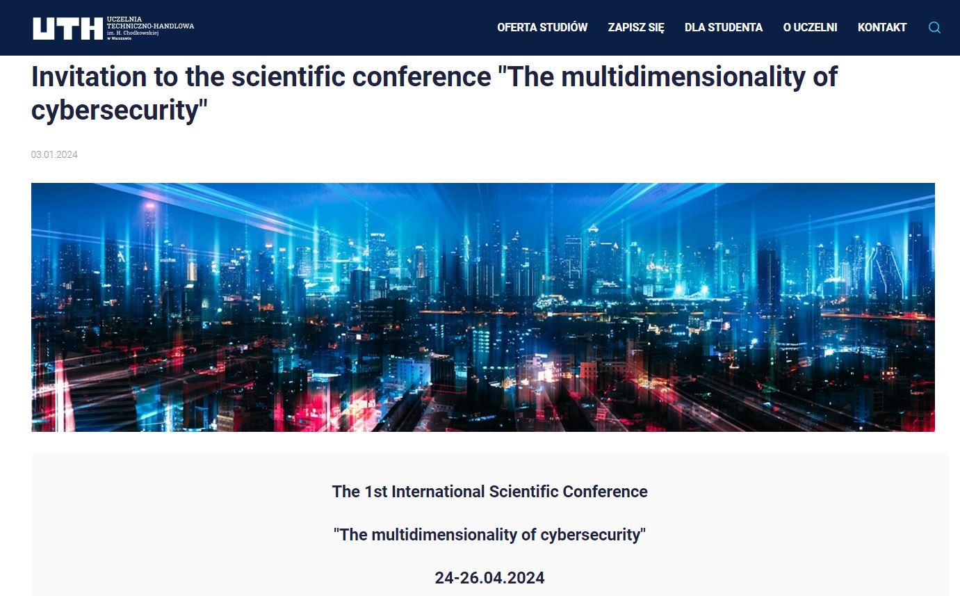 Link do strony www – https://www.uth.edu.pl/aktualnosci/invitation-to-the-scientific-conference-the-multidimensionality-of-cybersecurity-2024